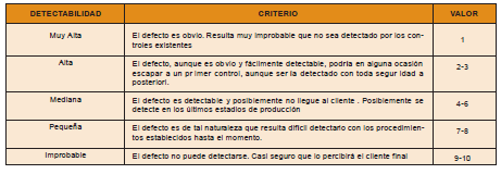 Este índice indica la probabilidad de que la causa y/o modo de fallo, supuestamente aparecido, sea detectado con antelación suficiente para evitar daños, a través de los “controles actuales” existentes a tal fin.