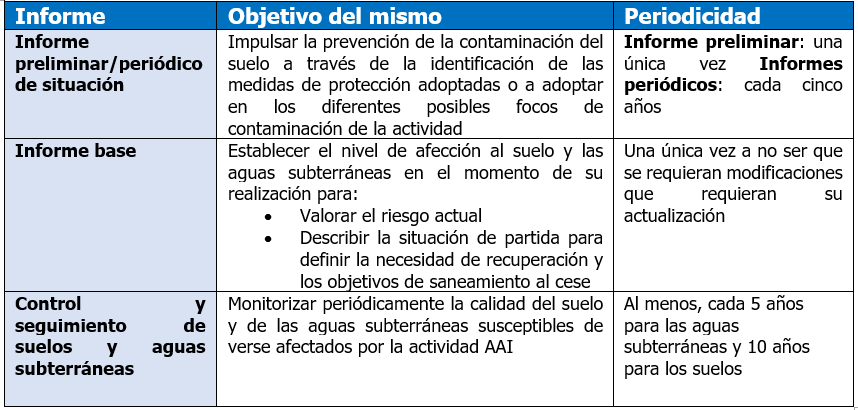La elaboración del informe preliminar y de los informes periódicos de situación del suelo y el inicio del procedimiento de declaración de la calidad de este medio al cese definitivo de la actividad son dos de estas obligaciones aplicables a todas las actividades potencialmente contaminantes del suelo y, en consecuencia, a la mayor parte de las instalaciones sometidas a autorización ambiental integrada (AAI).