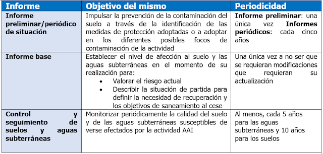 Como se puede apreciar los 3 tipos de informes aplican a la calidad del suelo y de las aguas subterráneas, aunque sus enfoques y periodicidades divergen de alguna manera: