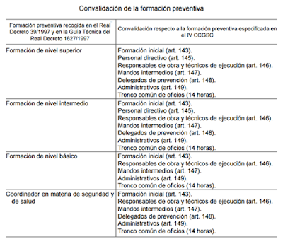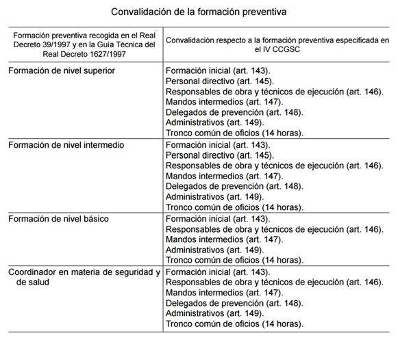 De todas formas, si el trabajador ya tiene formación por otra vía, esta se puede convalidar en virtud al artículo 163.3 en función de la siguiente tabla: