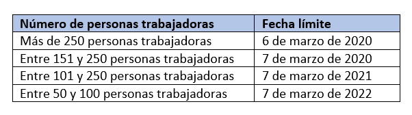 - Calendario de actuaciones para la implantación, seguimiento y evaluación de las medidas del plan de igualdad.