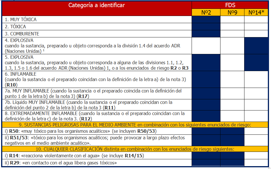 - Sustancias y preparados de la parte I y clasificados como tóxicos y muy tóxicos, junto con sustancias y preparados de las categorías 1 y 2 de la parte II.